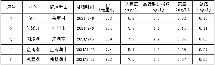2024年9月蘇州工業園區地表水監測結果