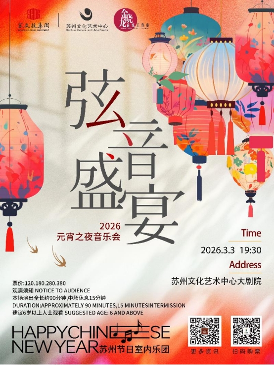蘇州文化藝術中心:元宵節,蘇州著名小提琴藝術家金曉龍與他的朋友們將來到蘇州文化藝術中心大劇院,為觀眾帶來精彩的弦樂演奏,演出曲目涵蓋了多位大師的浪漫曲,邀您一起共度弦音盛宴2026元宵之夜音樂會。