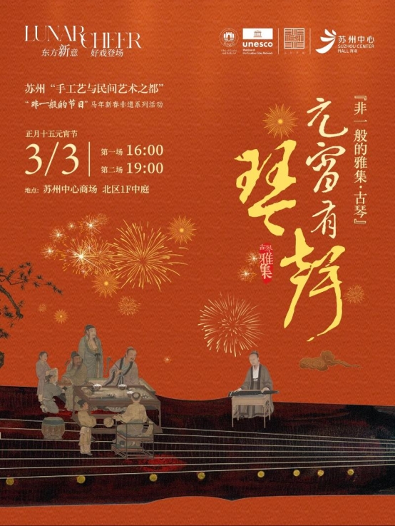 蘇州中心:3月3日,蘇州中心商場北區一樓中庭將舉辦“非一般的雅集?古琴”專場。指尖輕撥,清音流轉,邀市民與游客共赴一場滌蕩心靈的聽覺雅集?,F場將奏響《賽馬》《梅花三弄》《上春山》等經典曲目,共設兩場演出,分別于16:00、19:00開場。元宵佳節,不妨移步蘇州中心,聽一曲清音入耳,共賞雅韻。
