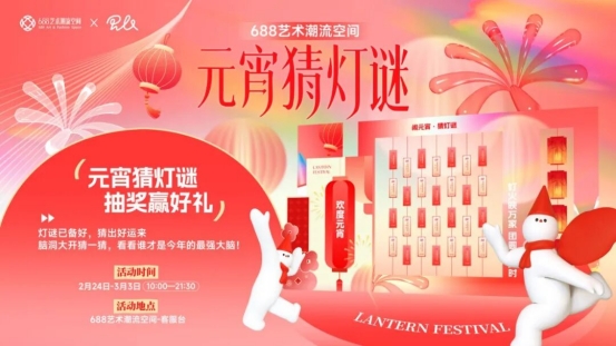 688藝術潮流空間:即日起至3月3日,688藝術潮流空間上線元宵猜燈謎活動,贏取展覽門票、美食套餐、非遺年禮等好禮,讓傳統游戲,鏈接新年歡喜。