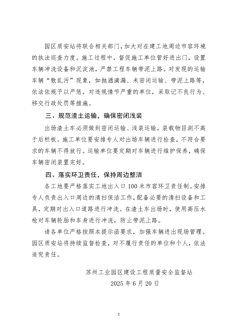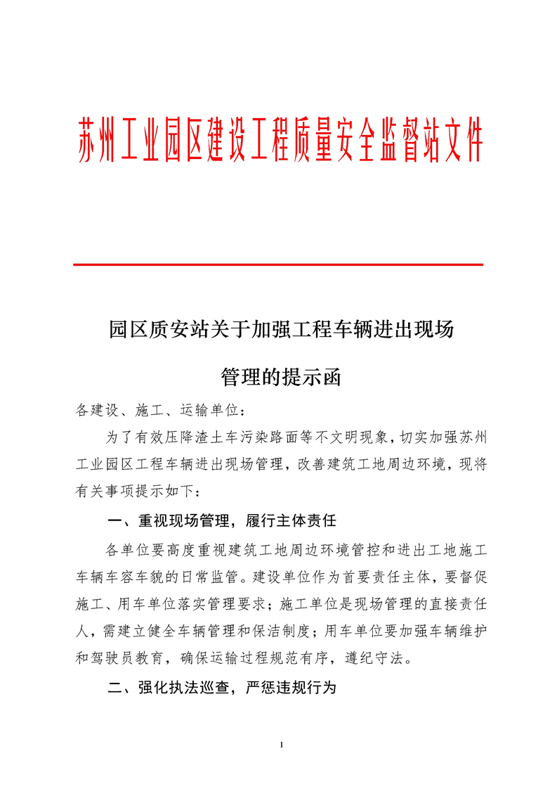 園區(qū)質(zhì)安站關(guān)于加強(qiáng)工程車(chē)輛進(jìn)出現(xiàn)場(chǎng)管理的提示函