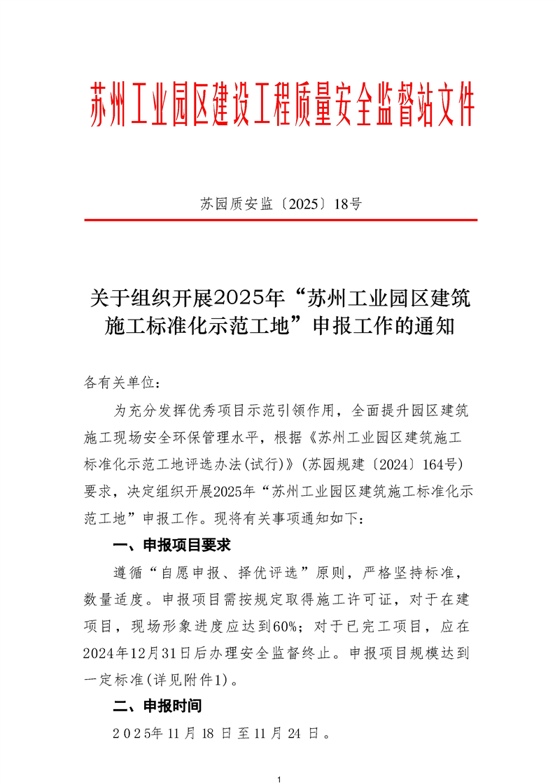 關于組織開展2025年“蘇州工業園區建筑施工標準化示范工地”申報工作的通知