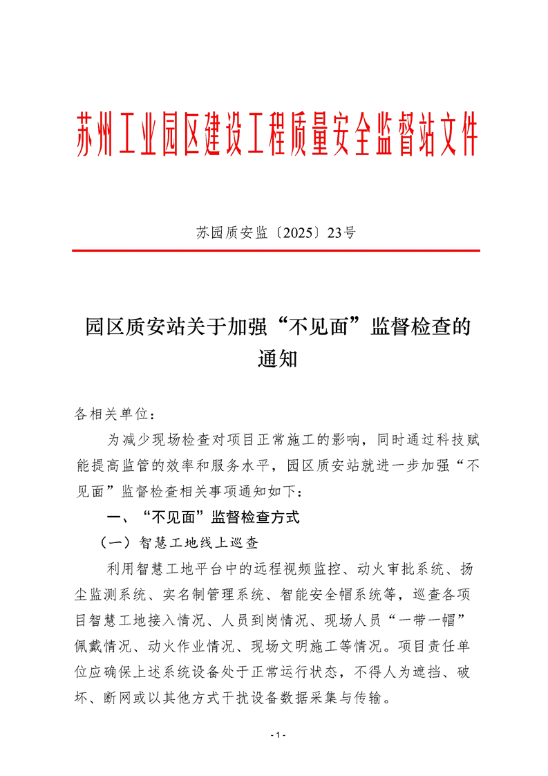 園區(qū)質(zhì)安站關(guān)于加強(qiáng)“不見(jiàn)面”監(jiān)督檢查的通知