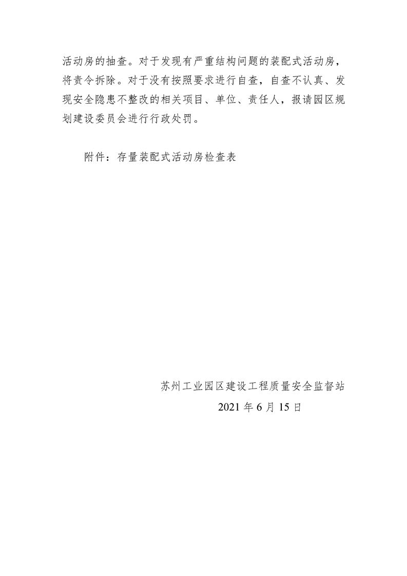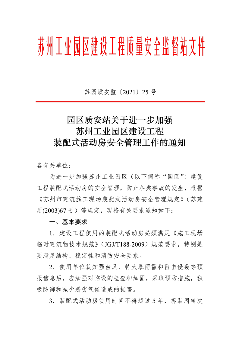 園區質安站關于進一步加強蘇州工業園區建設工程裝配式活動房安全管理工作的通知
