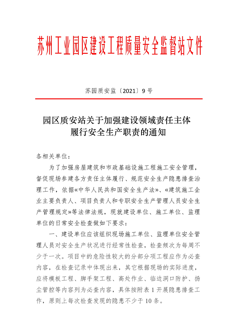 園區(qū)質(zhì)安站關(guān)于加強(qiáng)建設(shè)領(lǐng)域責(zé)任主體履行安全生產(chǎn)職責(zé)的通知