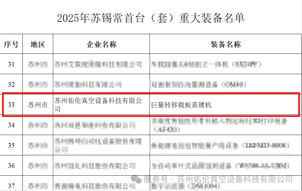 佑倫真空“巨量轉移載板蒸鍍機”榮獲2025年蘇錫常首臺(套)重大裝備認定