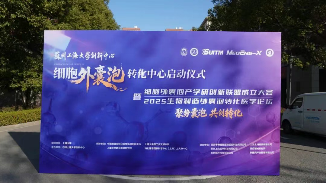 活動伊始,蘇州上海大學創新中心細胞外囊泡轉化中心正式揭牌啟動。該中心以上海大學細胞外囊泡研究中心為重要支撐,深度整合國內外知名高校與領軍企業,致力于攻克細胞外囊泡在規?;苽洹藴驶b定、工程化修飾及臨床轉化應用中的核心技術瓶頸,打造國際一流的研發與轉化平臺。