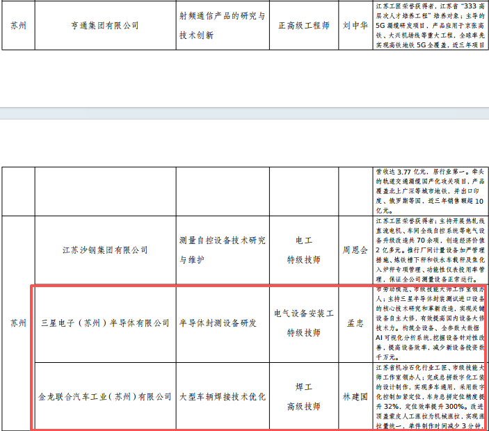 近日,江蘇省人社廳發布《關于2025年首席技師人選名單的公示》,經企業自主評審、區市初審推薦、省級復核后,全市6名技能大師脫穎而出,取得“新八級工”職業技能等級認定最高級別——首席技師,園區2人上榜,占全市1/3。