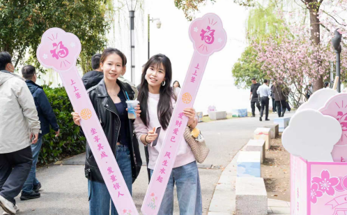 依托湖畔百花爭春的盛景,現場打造世尊步道、春日花墻、創意夸夸鏡三大主題打卡點,步道落英繽紛、花墻氛圍感拉滿、夸夸鏡傳遞溫暖治愈,成為市民拍照打卡的熱門點位,隨手一拍便是春日大片,朋友圈刷屏不斷。
