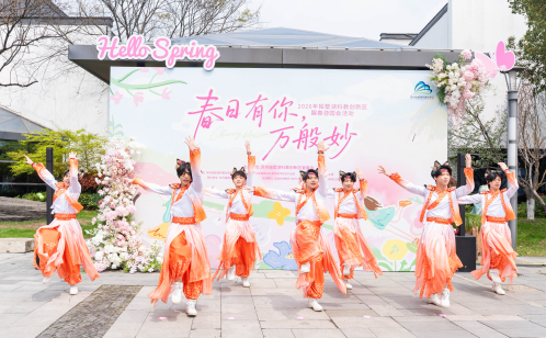 活動在熱鬧的國潮醒獅表演中拉開帷幕,鏗鏘鼓點與靈動獅步點燃全場氣氛。軟萌可愛的山塘小貍貓主題舞蹈靈動登場,俏皮演繹蘇式閑趣,將本土文化與春日氛圍巧妙融合,盡顯獨墅湖的浪漫與活力。