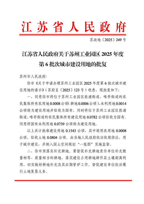 蘇州工業園區2025年度第6批次城市建設用地-批文