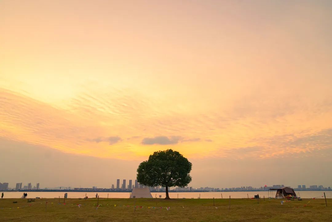 在白鷺園附近的半月灣,有一棵孤獨的“網紅”樹,靜靜佇立在獨墅湖東岸,樹下綠茵平鋪,是露營野餐的優(yōu)選之地,沐浴在陽光和春風中,放空頭腦,享受愜意。