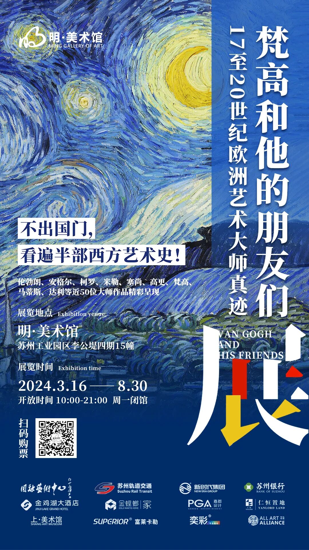 明·美術館的“梵高和他的朋友們”17至20世紀歐洲藝術大師真跡展,精選包括倫勃朗、米勒、高更、梵高、馬蒂斯、達利等50余位歐洲藝術大師的經典作品,讓觀眾不出國門,一站看遍半部西方藝術史。