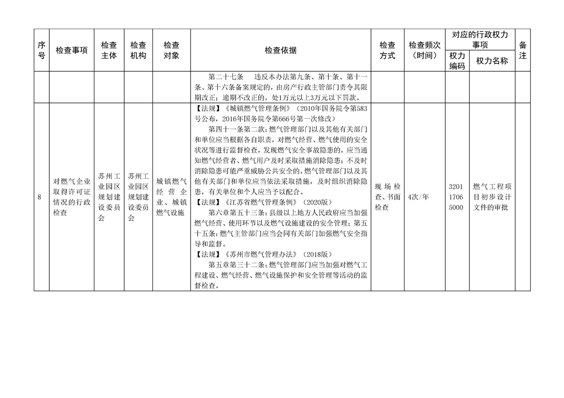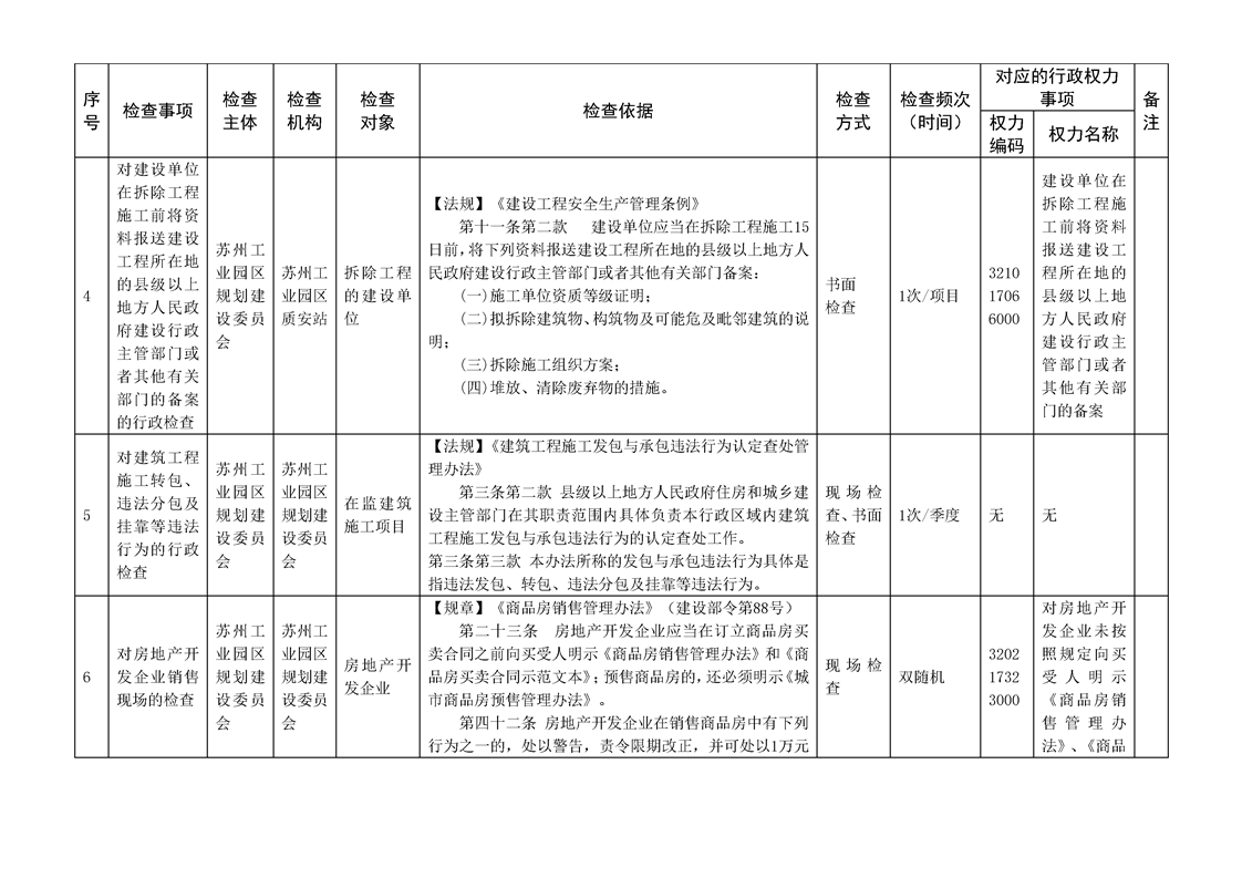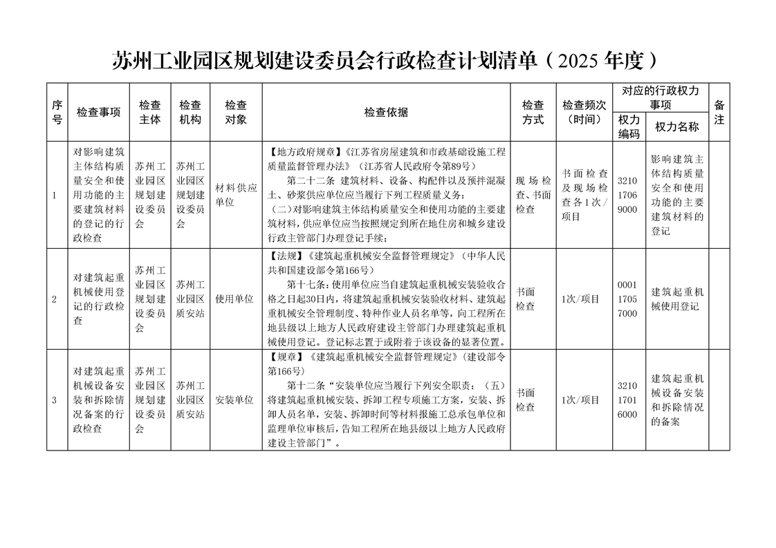 蘇州工業(yè)園區(qū)規(guī)劃建設委員會行政檢查計劃清單(2025年度)
