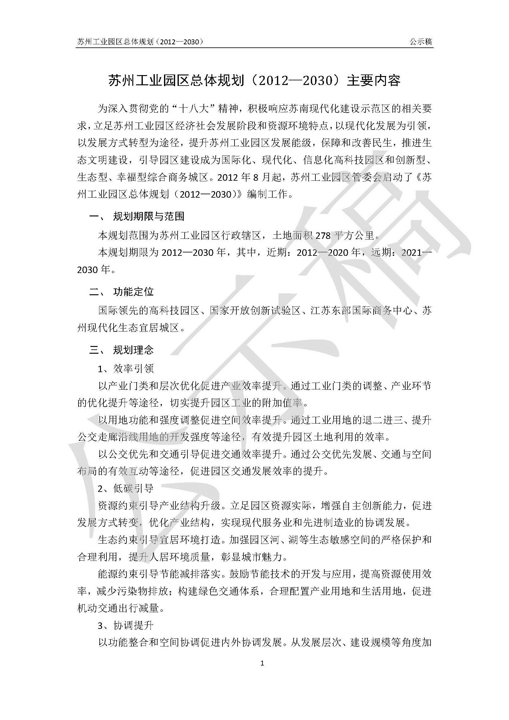 《蘇州工業園區總體規劃(2012-2030)》公示