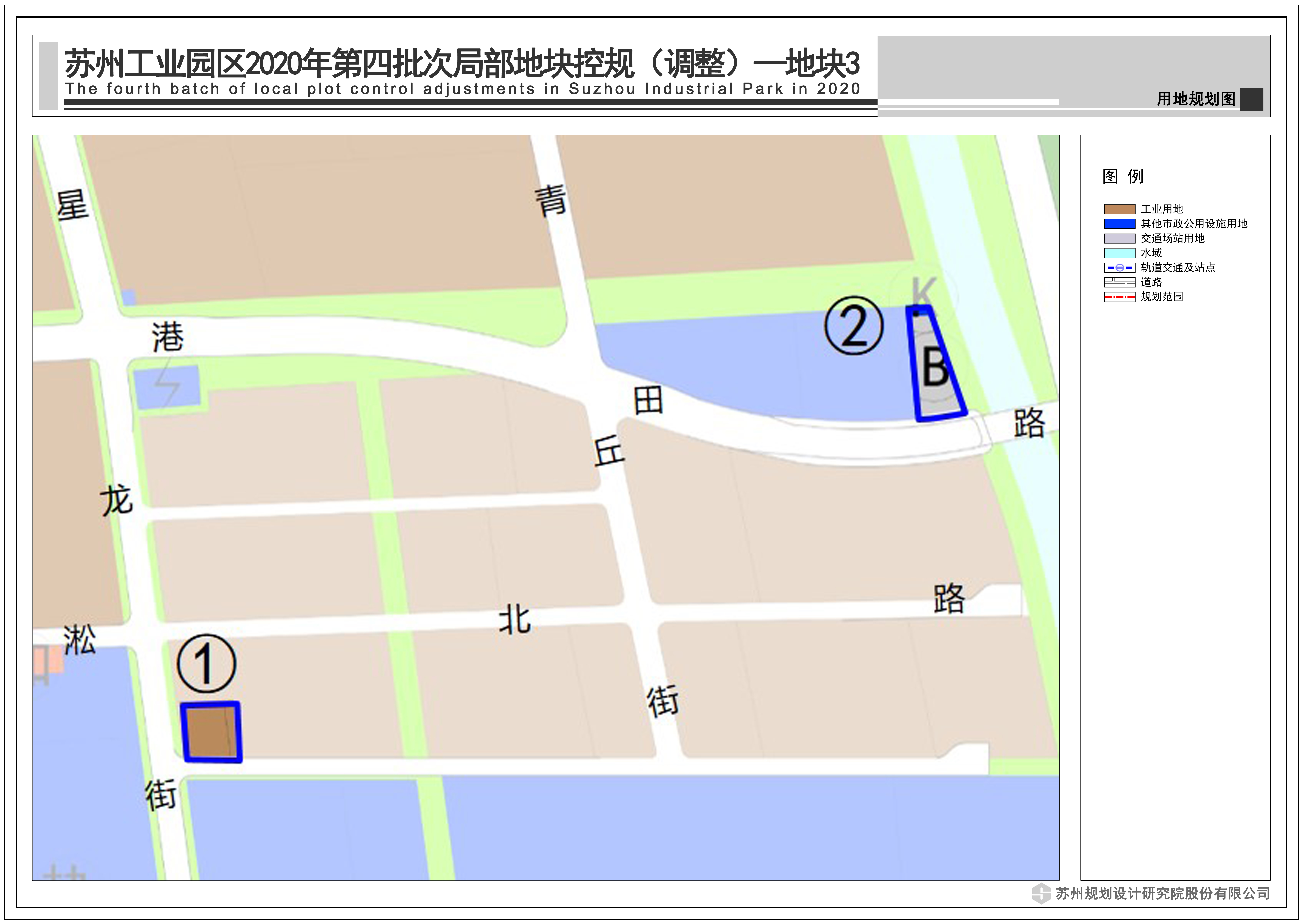 將地塊①原規劃交通場站調整至地塊②,地塊①調整為工業用地;地塊②內原有其他市政設施用地(開閉所)調整至交通場站北側。