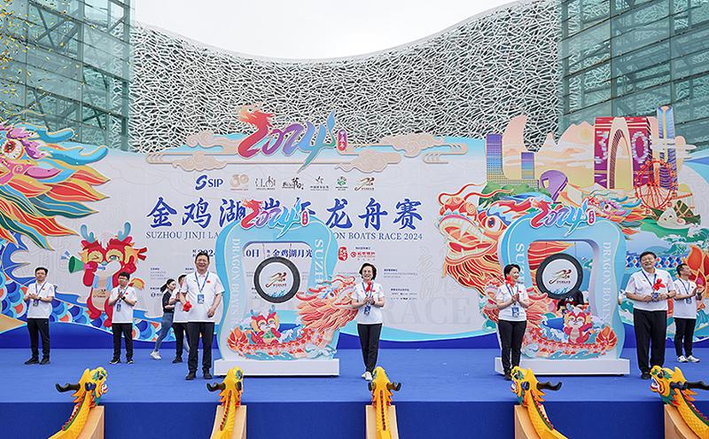6月10日午前、2024金鶏湖端午ドラゴンボートレースが蘇州工業(yè)園區(qū)の月光埠頭でスタートした。66チームが金鶏湖で波を追い合って競爭し、先を爭う、誠意をもって一致団結(jié)するドラゴンボートの精神を十分に展示し、スポーツ、文化、観光とビジネスが融合発展するドラゴンボートの饗宴を作り出した。