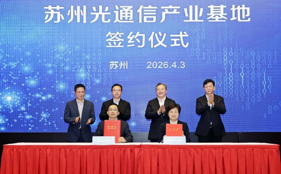 4月3日、蘇州光通信産業(yè)基地調(diào)印式が行われた。蘇州市委員會(huì)書記の範(fàn)波氏、蘇州旭創(chuàng)科學(xué)技術(shù)有限公司創(chuàng)始者兼最高経営責(zé)任者の劉聖氏が調(diào)印式に出席し、共に蘇州光通信産業(yè)基地及び産學(xué)研協(xié)力プラットフォームの除幕を行った。