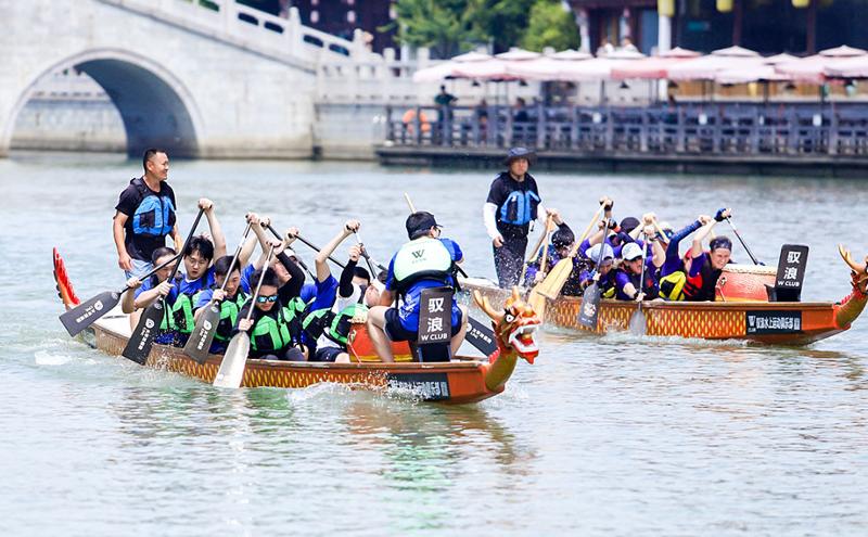 金鶏湖端午ドラゴンボートレースは既に園區(qū)ひいては蘇州市で最も代表的なフェスティバルブランドの一つになっており、たくさんの市民及び観光客が首を長くして待つ端午節(jié)の盛事でもある。同イベントは「同楽江蘇」、「休日體育」と「私たちのお祭り」三つのシリーズ活動の一つとして、「伝承、革新、融合」の理念を受け継ぎ、たくさんの國內(nèi)外のドラゴンボートスポーツの愛好者を參加へ引き付けた。