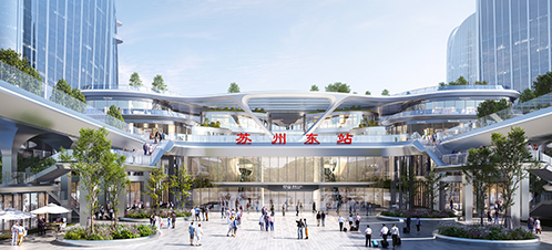 蘇州東駅は園區(qū)の桑田科學(xué)島の核心エリア、生物産業(yè)園の西側(cè)に位置する。同プロジェクトの初期開(kāi)発用地は約45ヘクタール、建築面積が合計(jì)147萬(wàn)平方メートルで、駅、商業(yè)施設(shè)、ホテル、研究開(kāi)発オフィス、住宅、都市総合サービスなどを一體とする。建設(shè)完成後、一日の利用者は約18萬(wàn)人を見(jiàn)込んでいる。駅の主體は地上1階、地下3階(部分的に4階)で、合計(jì)4つのホームが建設(shè)される。