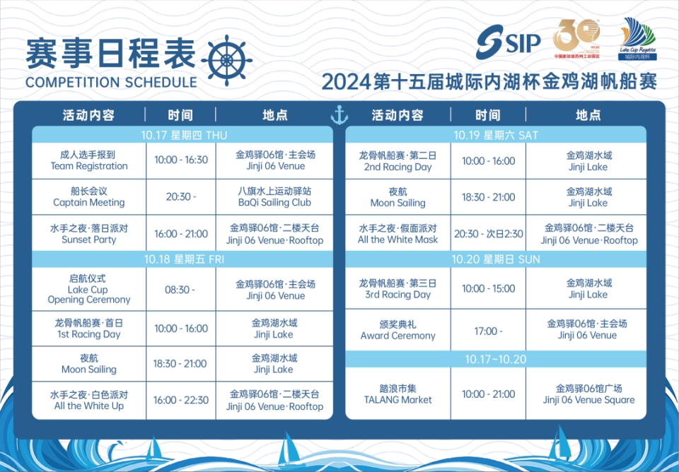 賽事期間,金雞驛06館還將舉辦踏浪市集、落日派對、水手之夜等系列活動,全力打造蘇州與帆船文化融合的潮玩盛會。