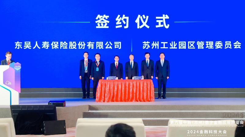 開幕式現場,蘇州工業園區管理委員會分別與中國金融電子化集團有限公司、安永(中國)企業咨詢有限公司、東吳人壽保險股份有限公司、江蘇常熟農村商業銀行股份有限公司進行戰略合作簽約,常熟農商銀行科創金融中心正式揭牌,多方資源匯聚,多條線合作持續加強。