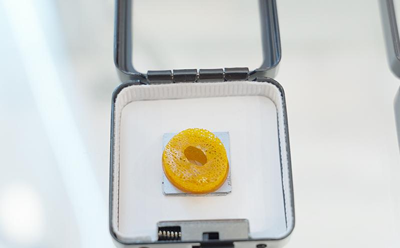 展臺中,一塊小小的陶瓷超材料模型玲瓏剔透,而其內(nèi)部則是肉眼無法觀察的蜂窩狀結(jié)構(gòu)。“在微納應(yīng)用下,我們可以模擬展現(xiàn)一些新材料的結(jié)構(gòu)特性,從而助力新材料的研發(fā)。目前,公司與多家客戶達成了合作,可以輔助實現(xiàn)一些全新課題的研發(fā)。譬如這款陶瓷超材料的結(jié)構(gòu)打印,就為不同結(jié)構(gòu)的新材料研發(fā)提供了新的可能性。”周禮俊說。