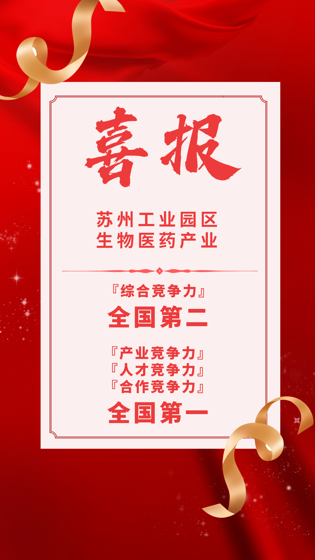 10月31日,在2024中國生物技術創新大會上,中國生物技術發展中心重磅發布《2024中國生物醫藥產業園區競爭力評價及分析報告》,蘇州工業園區排名獲近三年最好成績,綜合競爭力穩居全國第二,產業競爭力、人才競爭力、合作競爭力全國第一。