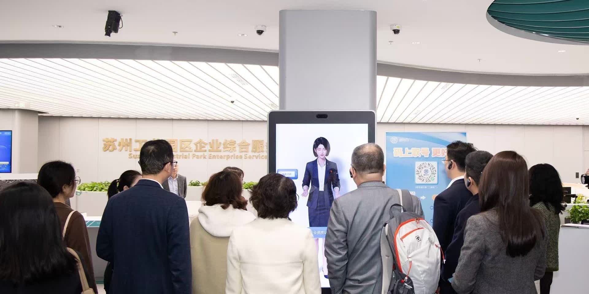 “你好,小易,辦護照在哪個窗口?”“您可以去1樓南側公安服務大廳1S08號至1S13號6個辦事窗口,辦理中國公民因私出國護照辦理相關業(yè)務。”3月15日,蘇州工業(yè)園區(qū)政務服務數(shù)字人“小易”正式上崗。在園區(qū)市民服務中心的多個電子屏幕前,好奇的辦事群眾將“小易”團團圍住,熱情提問。