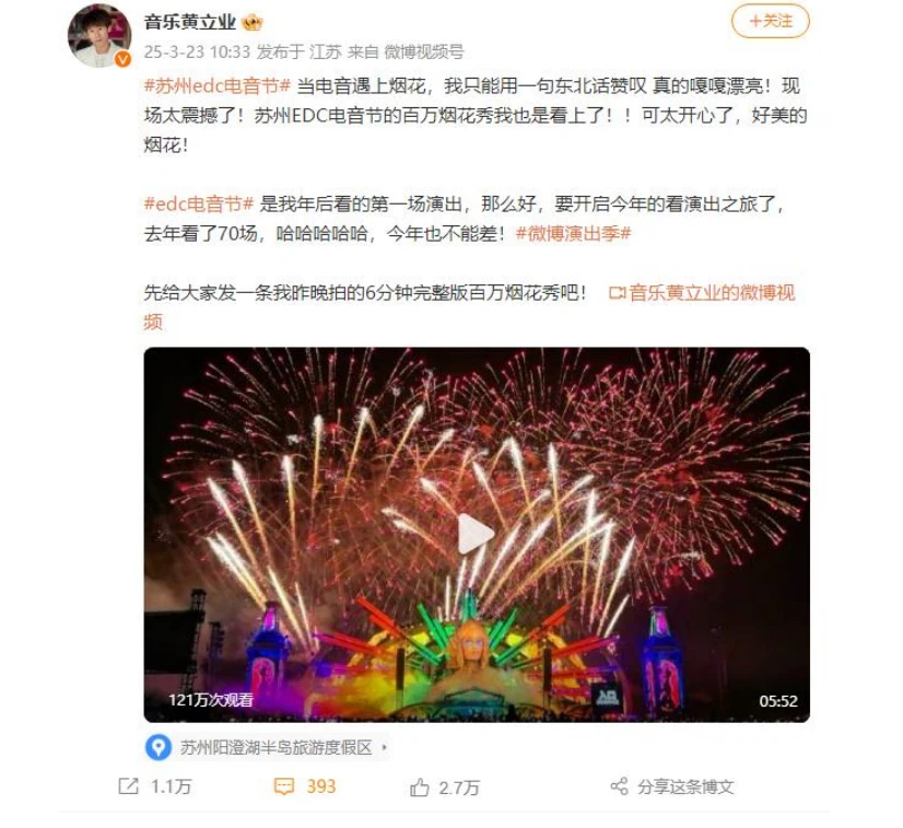 活動期間,EDC相關話題持續霸榜微博、抖音、小紅書等社交媒體。據官方預測,本次EDC嘉年華線上與線下曝光量15億+。
