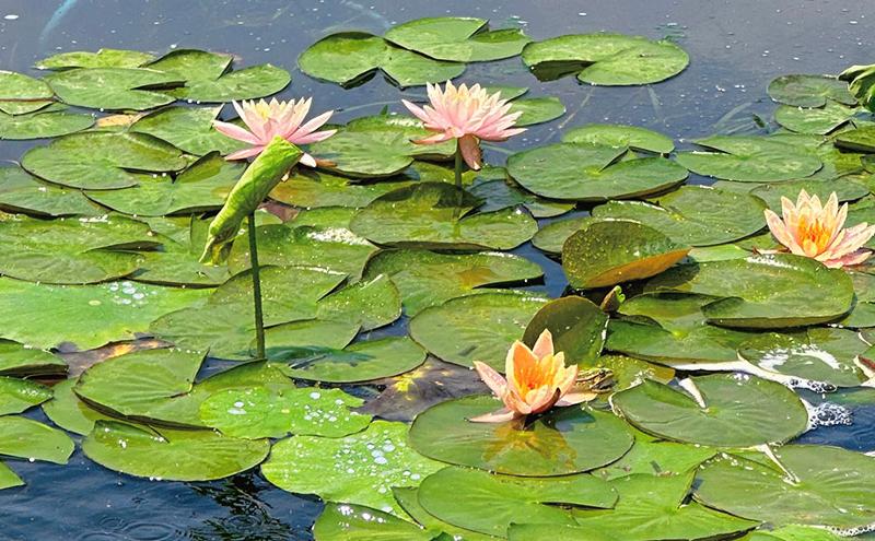 初夏時節,微風輕拂,環金雞湖步道蘇州文化藝術中心段,一朵朵睡蓮在晨光中蘇醒,正悠然綻放,將湖面裝點成一幅靈動的生態畫卷。