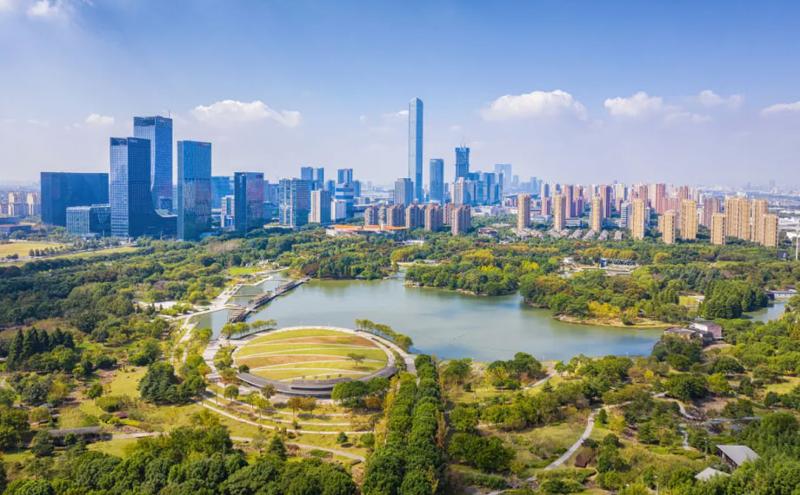 自開發建設以來,園區高度重視生態環境保護,堅持系統治理和重點攻堅,大氣環境質量持續改善,穩定達到國家空氣質量二級標準;立足水環境改善,暢通水系、水岸同治,再現水清岸綠、河暢景美的美麗畫卷;突出水安全保障,建立“雙水源、雙通道”供水模式,供水系統安全韌性持續加強;秉持“源頭防控、系統治理、智慧監管”理念,打造立體化生態環境保護體系,土壤、地下水、聲環境、輻射環境穩步向好;縱深推進生態管控修復、本底調查,生態系統穩定性顯著增強。
