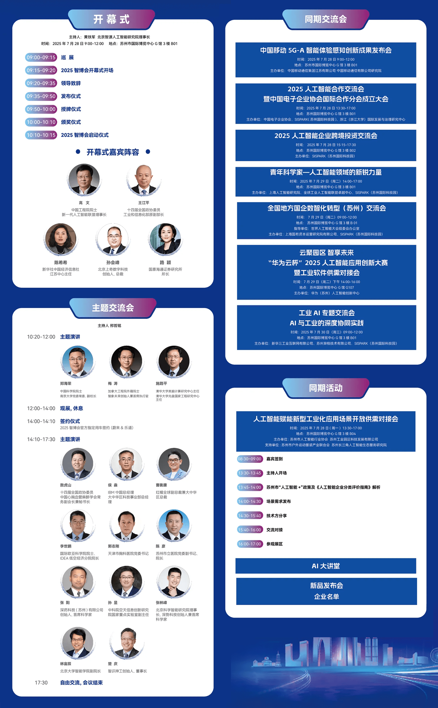 7月28日,2025人工智能產品應用博覽會在蘇州工業園區啟幕。除了主旨分享、專題論壇、供需對接,展覽展示、新品發布、雙城聯動、AI大講堂四大板塊也是亮點紛呈,不僅展現了AI賦能千行百業的生動畫... [詳細]