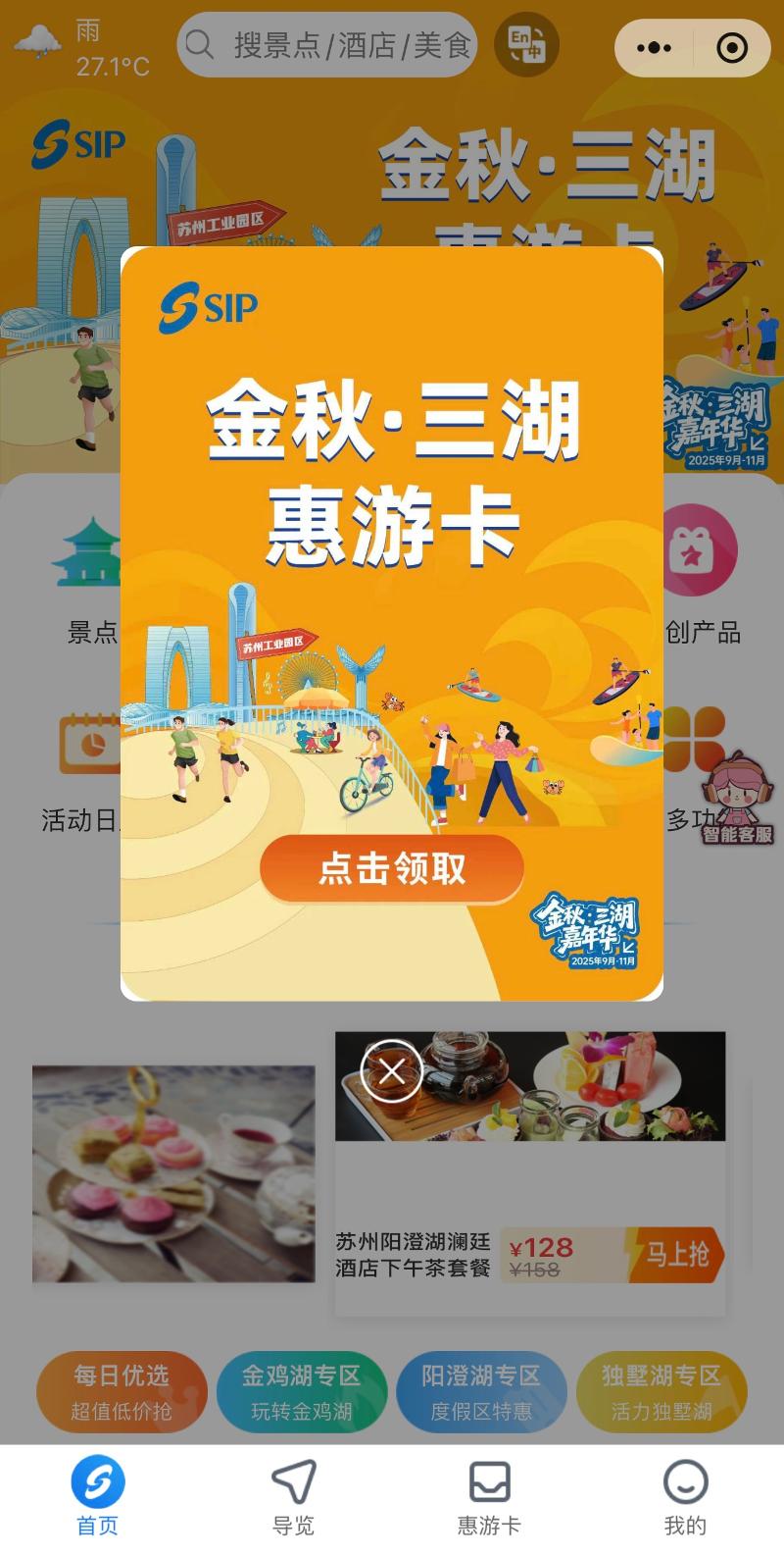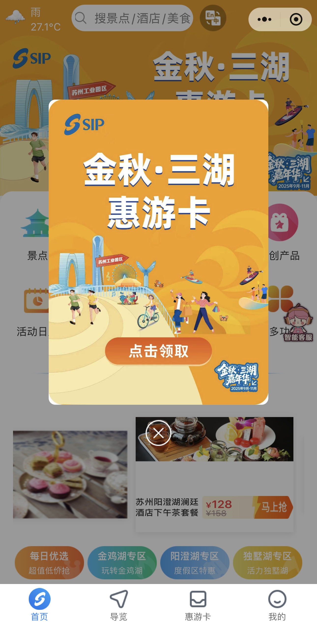 為讓市民游客“消費(fèi)更優(yōu)惠、參與更輕松”,活動(dòng)期間推出一系列針對(duì)性惠民舉措,覆蓋酒店住宿、餐飲美食、休閑零售、文旅體驗(yàn)等多個(gè)領(lǐng)域。“金秋?三湖惠游卡”重磅升級(jí)發(fā)布,市民游客通過(guò)“惠游園區(qū)”平臺(tái)免費(fèi)領(lǐng)取后,可于小程序右下角“我的”—“我的卡包”中,快速查看。