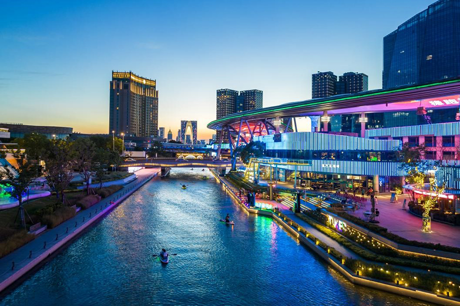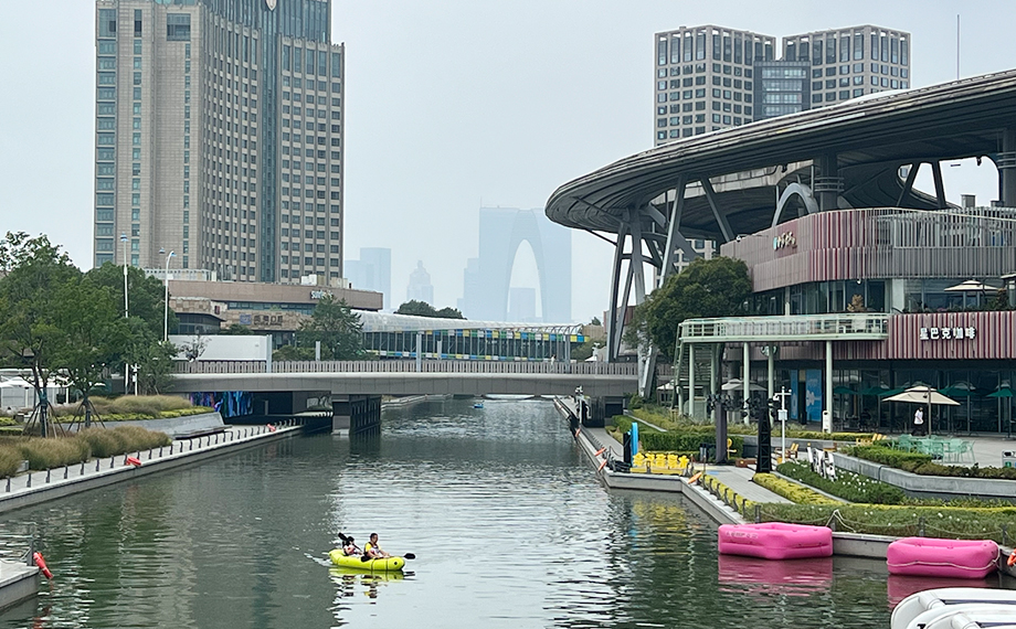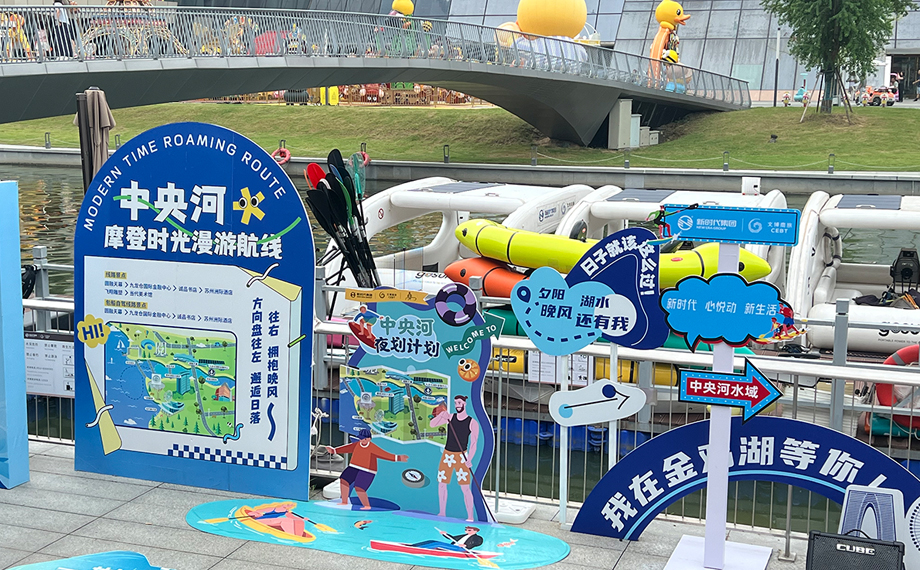 中央河里,水上運動愛好者一早就劃著背包船蕩漾在水中。工作人員介紹,中央河正推出摩登時光漫游航線,串聯圓融天幕、國金中心、誠品書店、飛翔雕塑和當代美術館,既可追晚風日落,又能賞璀璨夜景,充分感受都市與自然的交融。“雙節期間,我們還有情侶槳板尋鴨撈趣賽、背包船競速賽、水上木頭人、汪汪日劃派對、夜光槳板秀、槳板&無動力水翼表演等精彩活動,帶來不一樣的河畔浪漫。”