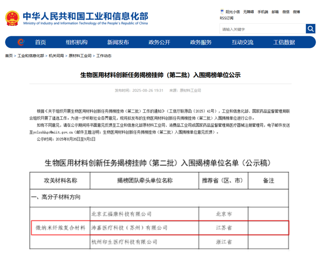 2025年8月,沛嘉醫(yī)療與聯(lián)合體成員單位等共同申報(bào)的“用于心臟瓣膜的超高分子量聚乙烯微納米纖維仿生復(fù)合材料研發(fā)及應(yīng)用”項(xiàng)目,成功入選由工業(yè)和信息化部、國(guó)家藥品監(jiān)督管理局聯(lián)合發(fā)布的生物醫(yī)用材料創(chuàng)新任務(wù)揭榜掛帥(第二批)入圍單位名單。