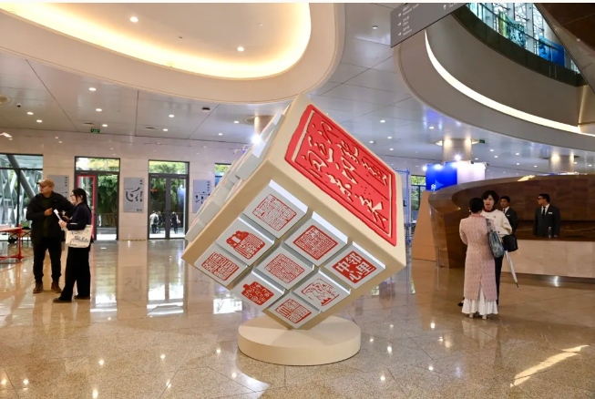 本次展覽突破傳統(tǒng)篆刻展陳模式,以“科技+藝術(shù)”賦能文化傳播。展覽主題印“印記園區(qū)印向未來(lái)”以園區(qū)標(biāo)志性建筑東方之門、國(guó)金中心、飛翔雕塑等為主體造型,通過全息棱鏡技術(shù)動(dòng)態(tài)呈現(xiàn)印章作品,讓觀眾直觀感受“江南文化”與“現(xiàn)代科技”的碰撞。堅(jiān)持守正創(chuàng)新,新理念、新內(nèi)容、新設(shè)計(jì)、新造型、新材料,新科技貫穿全展,眾多全新創(chuàng)作的作品融合3D打印、機(jī)器刻制、彩色噴繪等,實(shí)現(xiàn)傳統(tǒng)藝術(shù)與現(xiàn)代科技的碰撞與賦能。