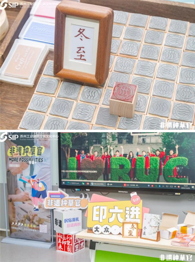 冬至大如年,人間小團圓。恰逢二十四節氣之一的冬至,活動以這一傳統節氣為文化紐帶,依托“印記園區印向未來”蘇州工業園區大眾篆刻作品展的“新大眾文藝”實踐,為中外學子搭建起跨文化交流的橋梁——不同國籍的年輕人因非遺相聚,在大眾篆刻的藝術形式下感受中華優秀傳統文化的當代生命力。