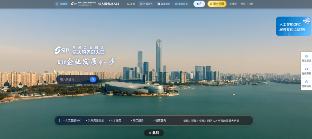 2025年3月,園區(qū)企業(yè)綜合服務(wù)平臺(tái)——法人服務(wù)總?cè)肟谡缴暇€啟用。作為園區(qū)聚焦企業(yè)服務(wù)、政務(wù)服務(wù)、產(chǎn)業(yè)服務(wù)融合創(chuàng)新的探索實(shí)踐,以及推動(dòng)“一網(wǎng)通辦”向“一網(wǎng)通服”升級(jí)的關(guān)鍵突破,園區(qū)“法人服務(wù)總?cè)肟凇眹@企業(yè)全鏈條需求、立足企業(yè)發(fā)展視角,在全國(guó)首創(chuàng)“AI服務(wù)總?cè)肟凇薄⒃谌珖?guó)率先打造“Person in Enterprise”(PIE)用戶體系、在全國(guó)政務(wù)服務(wù)領(lǐng)域創(chuàng)新推出“流暢設(shè)計(jì)”體系,著力推動(dòng)服務(wù)事項(xiàng)從能辦可辦到好辦易辦。