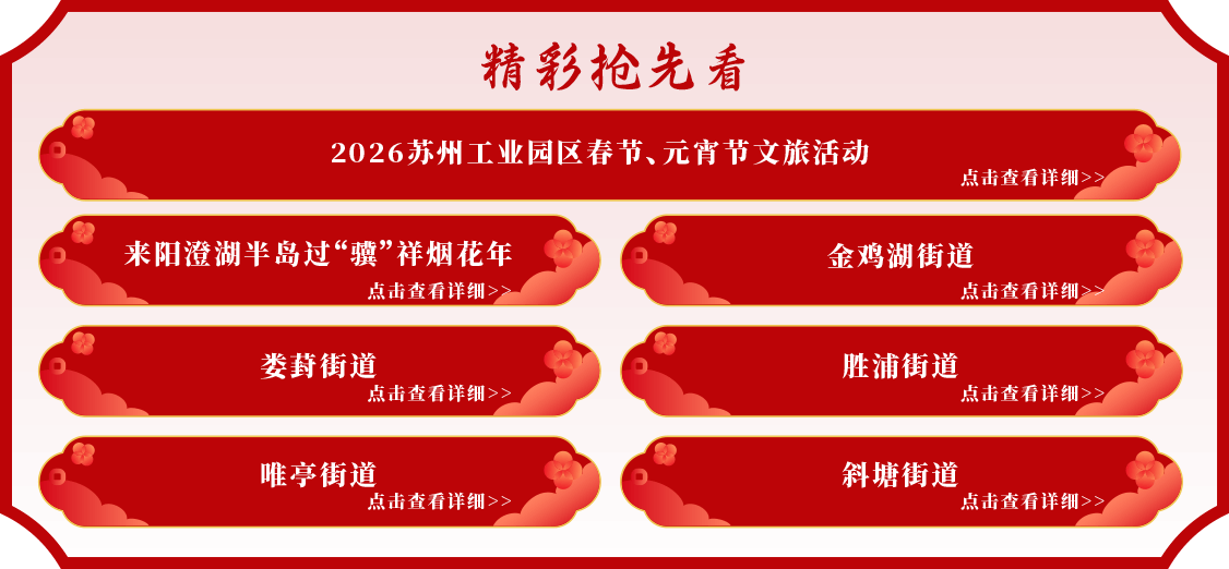 生活有千般精彩,你的春節(jié)假期還在被固有模式“捆綁”?2026年春節(jié),蘇州工業(yè)園區(qū)打造“駿馬迎春悅享三湖”新春消費(fèi)季活動(dòng),助您告別千篇一律。這里有浪漫的完美詮釋、潮玩的活力肆意,更有團(tuán)圓的別樣驚喜,一系列豐富多元且妙趣橫生的活動(dòng),帶您解鎖一個(gè)有別于傳統(tǒng)的新奇別致年。 浪漫湖光 心動(dòng)啟程 金雞湖畔,一條總長13.14公里的環(huán)湖步道已經(jīng)成為邂逅魅力之城的浪漫動(dòng)脈。活動(dòng)期間,園區(qū)推出非凡園區(qū)右岸之旅、堤調(diào)江南非遺韻、左岸漫步探新景三條CityWalk線路,囊括李公堤、東方之門、蘇州中心、金雞驛、蘇州文化藝術(shù)中心、飛翔雕塑、蘇州之眼摩天輪、蘇州當(dāng)代美術(shù)館等城市地標(biāo),讓市民游客漫享湖光水色與城... [詳細(xì)]
