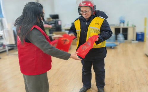 便民服務傳溫情,歡聲笑語聚鄰里。便民服務專區(qū)不僅提供免費磨刀服務,切實解決居民日常生活小事,還增設了禁燃禁放宣傳角。海棠先鋒、網(wǎng)格員現(xiàn)場講解安全知識與環(huán)保理念,引導居民共同守護晴朗藍天。海棠先鋒還為新就業(yè)群體送上春聯(lián)、福字及禁燃禁放宣傳物品,并致以誠摯問候,讓他們在忙碌奔波之余,真切感受到社區(qū)大家庭的溫暖與關懷,共同踐行文明過節(jié)的新風尚。居民們現(xiàn)場還參與了投壺傳統(tǒng)趣味游戲,相互比拼技藝、放松身心,在歡聲笑語中進一步拉近鄰里距離,凝聚社區(qū)合力。