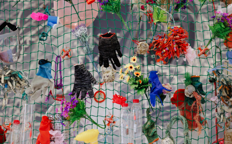 值得一提的是,本次展覽最具震撼力的部分,是方力鈞近年聚焦生態(tài)議題的“海洋垃圾”系列新作。2025年起,居住于秦皇島海邊的方力鈞,從海灘收集塑料、漁網(wǎng)、浮漂等工業(yè)廢棄物,經(jīng)切割、重組、熱熔、拼裝,將其轉(zhuǎn)化為兼具審美與批判意識的藝術(shù)品。