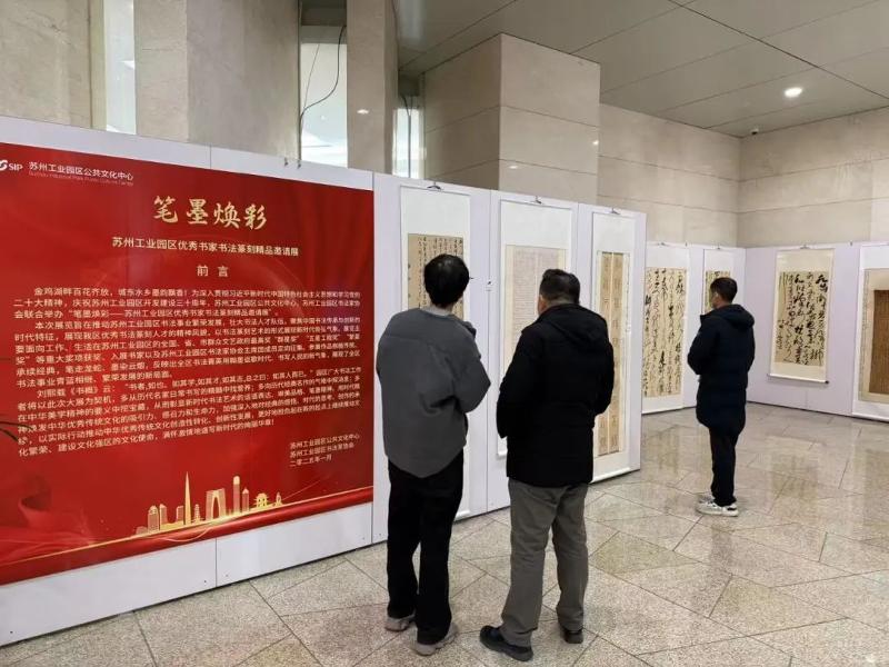 金雞湖畔,由園區(qū)公共文化中心、園區(qū)書法家協(xié)會聯(lián)合舉辦的筆墨煥彩——蘇州工業(yè)園區(qū)優(yōu)秀書家書法篆刻精品邀請展同樣墨韻飄香。