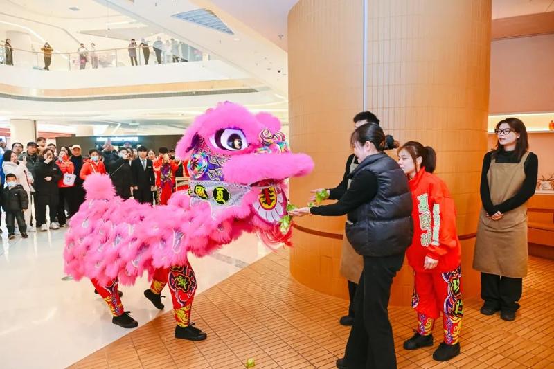 一群憨態(tài)可掬的小獅子在梅花樁上輕盈跳躍,時而翻滾,時而嬉戲,還俏皮地從口中“吐”出春聯(lián),為市民游客送上滿滿的新春祝福。這場精彩絕倫的龍獅表演,贏得了現(xiàn)場觀眾的陣陣掌聲,整個商場洋溢著喜慶。