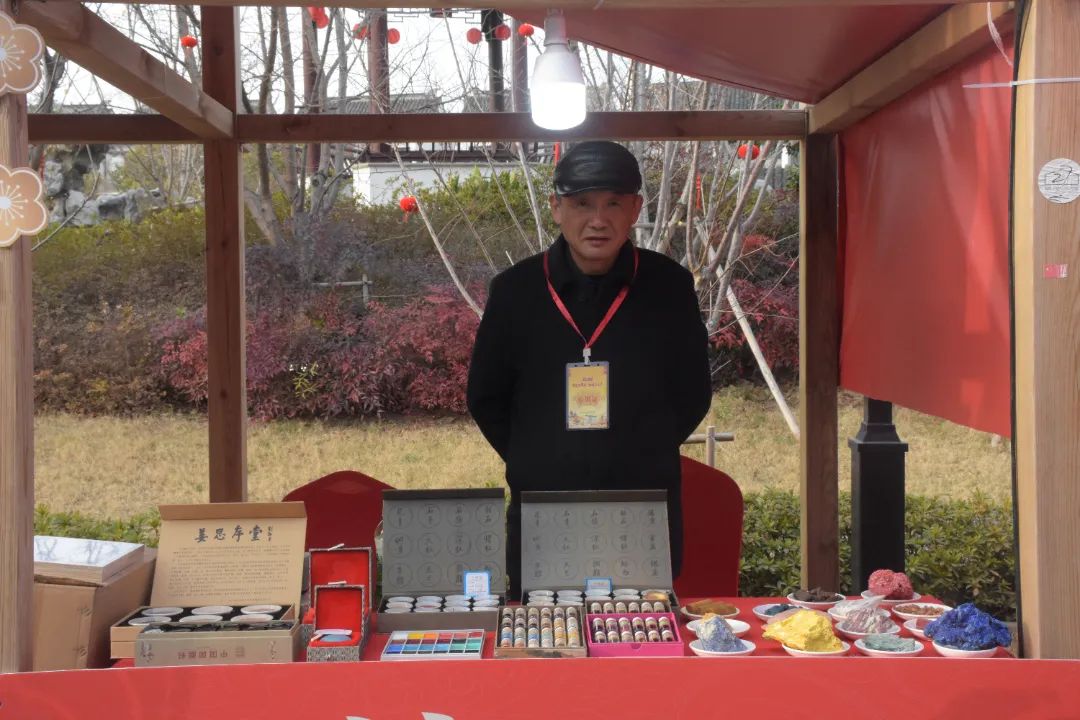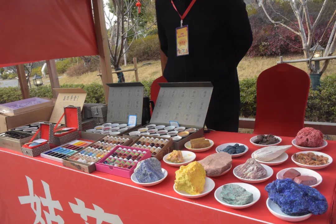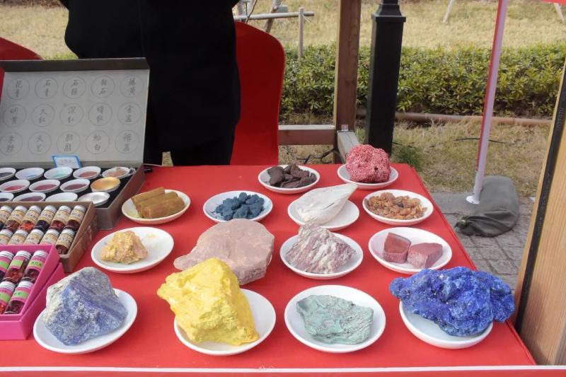 “這是藍(lán)銅礦,《千里江山圖》的青綠就是源自這種礦石。這是青金石、朱砂、瑪瑙、貝殼、藤黃、珊瑚、胭脂蟲……有些是礦物原料,有些是動物原料,蓼藍(lán)草等則是植物原料。”在“非遺賀新春——古城過大年”全國主會場活動暨蘇州古城過大年系列活動的展示現(xiàn)場,姜思序堂國畫顏料制作技藝非遺代表性傳承人張佰林正熱情地向圍觀的市民游客介紹著各色顏料的原材料。