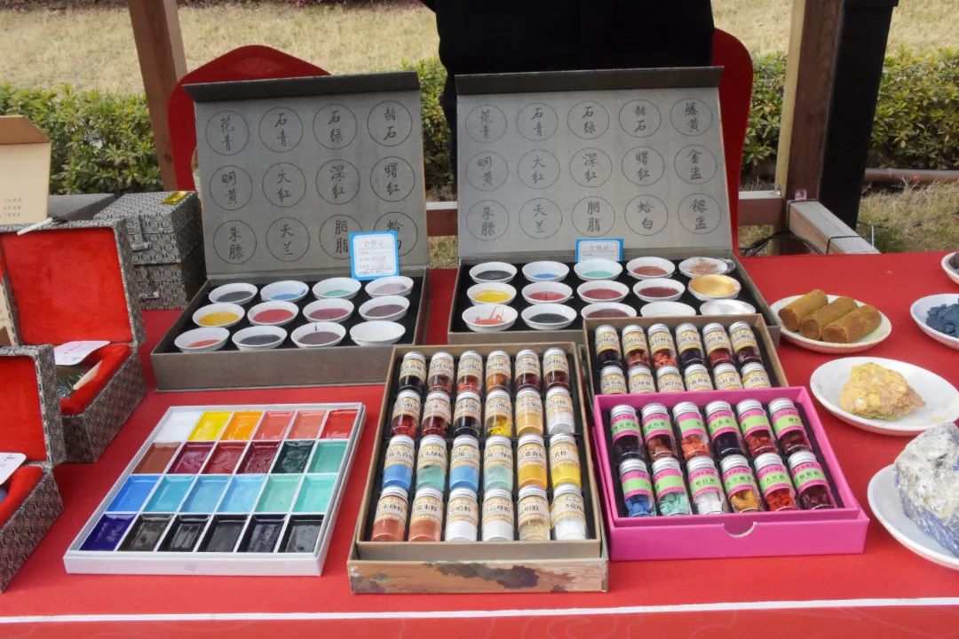 此次大會,張佰林不僅帶來了各色原材料,還帶來了多款針對不同用戶需求的12色國畫顏料,以及印泥、礦石標(biāo)本等品類的相關(guān)產(chǎn)品。現(xiàn)場,他還積極與大家分享國畫顏料制作的工藝流程和產(chǎn)品特色,并邀請有興趣的市民游客去工廠體驗。