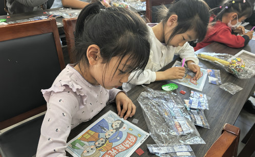 歡聲笑語中,一幅印有護士、警察、消防員、農(nóng)民等勞動者形象的鉆石畫逐漸成型。這場沉浸式的勞動美學體驗,不僅在孩子們心中播撒下尊重、熱愛勞動的種子,更傳遞了勞動即幸福的精神內核。