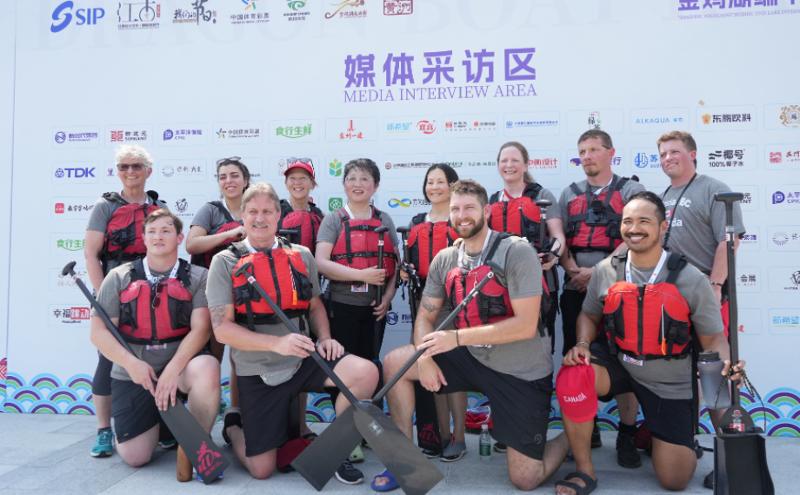 五月的金雞湖畔,陽光正好,涼風習習。2025金雞湖端午龍舟賽開賽前夕,一支身著灰色T恤、頭戴“小紅帽”的外籍友人龍舟隊在月光碼頭亮相,其身影在湖畔格外引人注目,他們就是來自加拿大維多利亞市的龍舟隊。隨著鼓點響起,槳葉破開粼粼波光,激起層層漣漪,一場跨越萬里的龍舟之約就此展開,這不僅是他們時隔六年重返蘇州的剪影,更是中加友誼之舟在碧波間續寫的嶄新航跡。