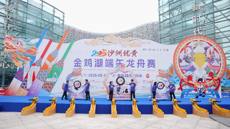 5月31日,2025沙洲優(yōu)黃第十五屆金雞湖端午龍舟賽在月光碼頭鳴鑼開賽。