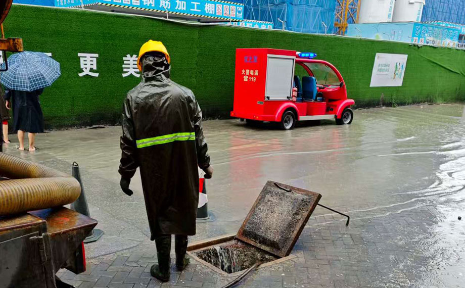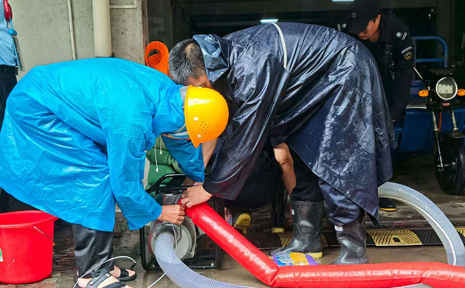 在金雞湖街道貴都社區(qū),社區(qū)工作人員針對二期車庫這一重點,聯(lián)合物業(yè)提前部署,精準(zhǔn)施策,在車庫入口處,配備大功率抽水泵,以便及時排除可能的積水威脅,為業(yè)主的財產(chǎn)安全撐起“保護(hù)傘”。其他各社區(qū)也整合物業(yè)、志愿者等多方力量,聚焦地下車庫、雨污水井、排水管網(wǎng)等關(guān)鍵部位,加強排查、疏通和清理,確保雨情第一時間響應(yīng)、險情第一時間處置。